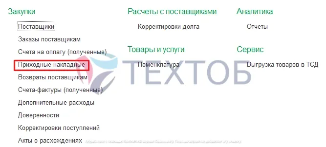 Настройка отчетов в разделе Закупки